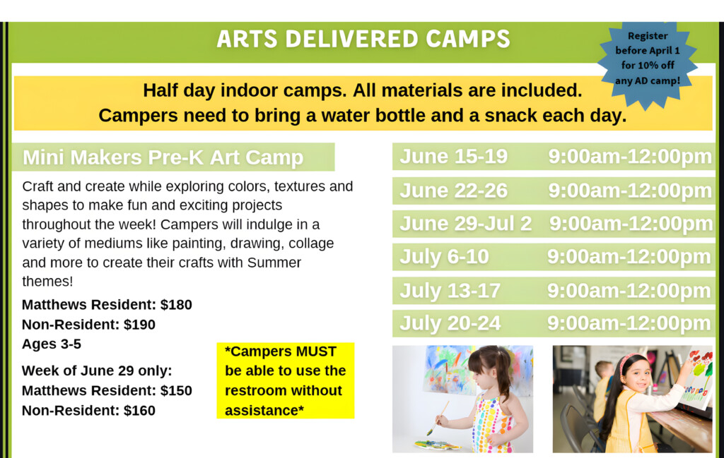 RISING 1ST/2ND GRADERS ART CAMP – JULY 27 – 31