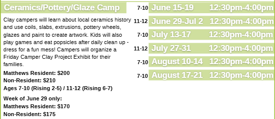 CERAMICS/POTTERY/GLAZE AGES 11 – 12 JUNE 29 – JULY 2