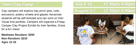 CERAMICS/POTTERY/GLAZE TWEENS & TEENS AUGUST 3 – 7