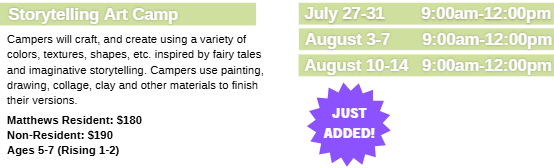 All classes @ Matthews McDowell Arts Center Studio – Map here!